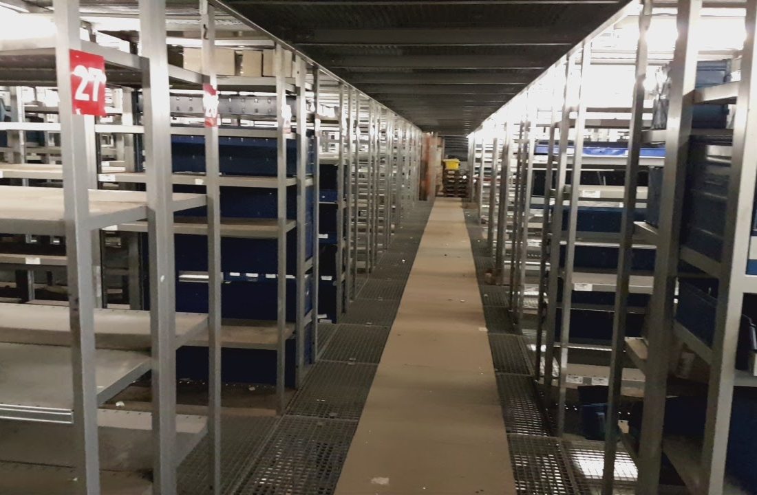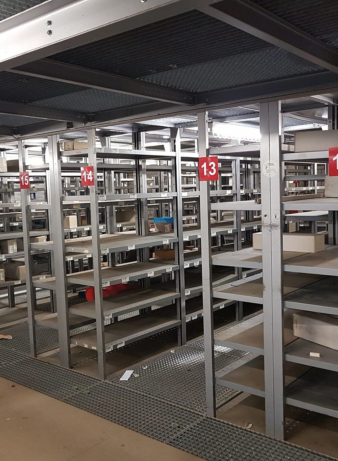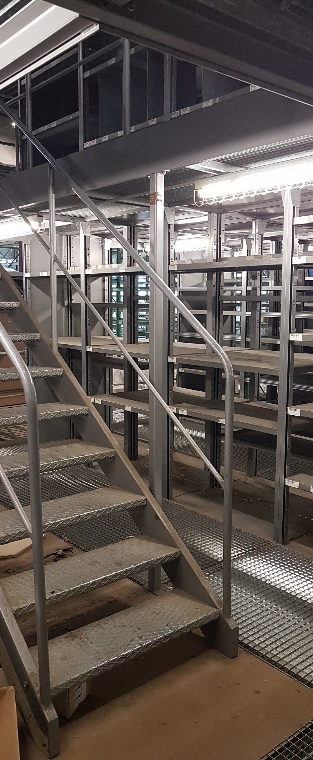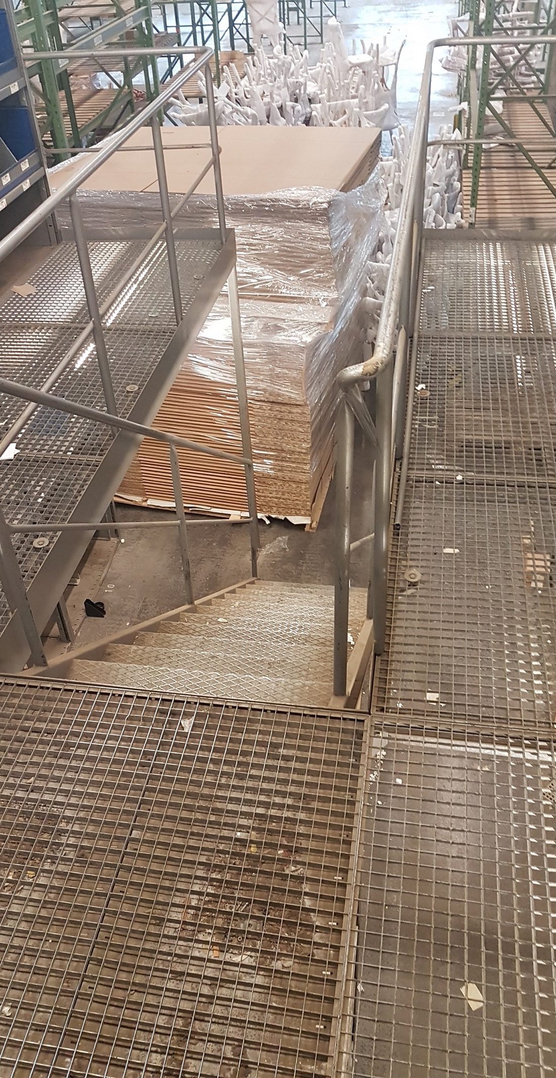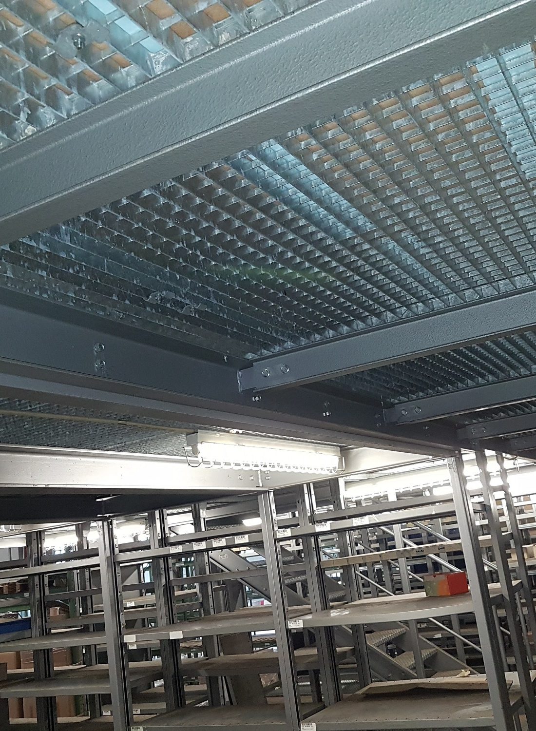 rafturi pe 3 nivele , cu grilaj zincat intre nivele , cu scara la fiecare nivel .